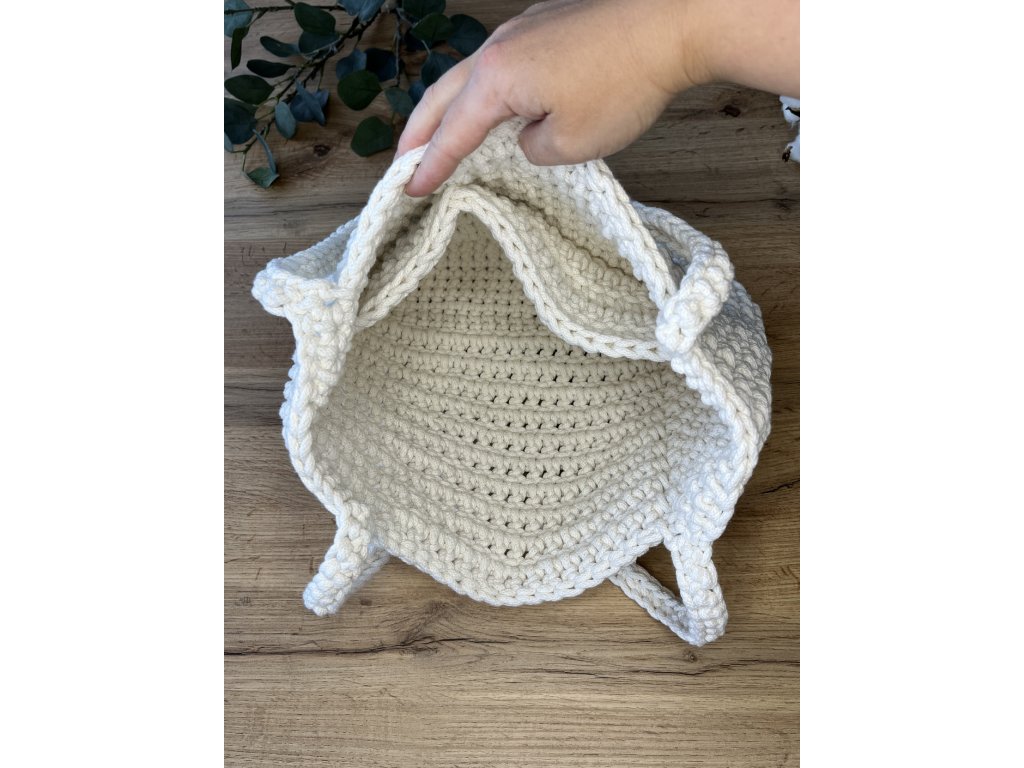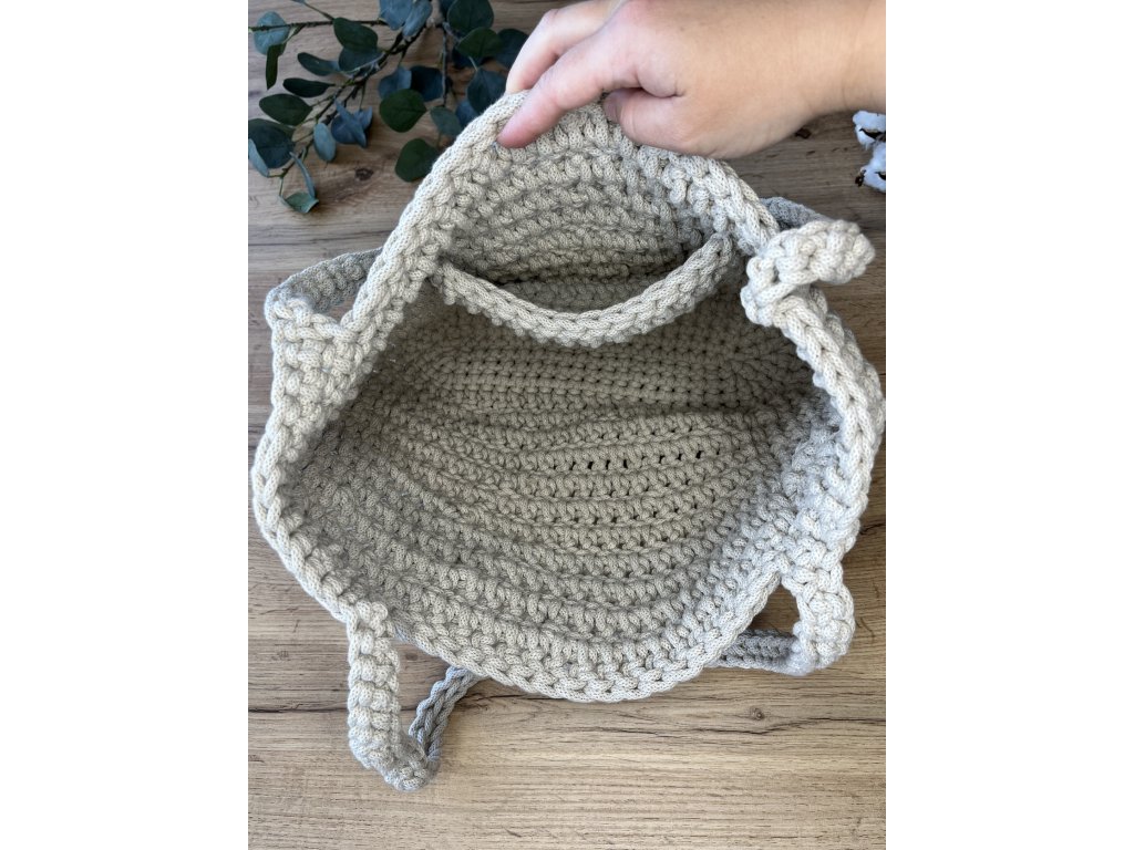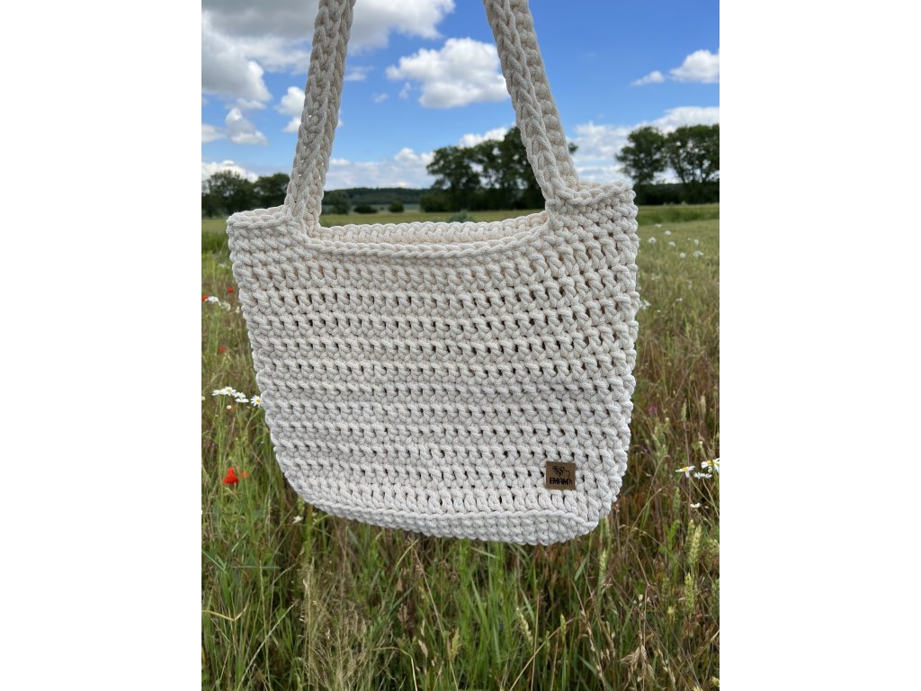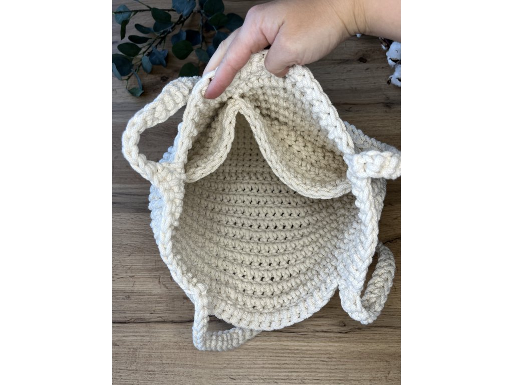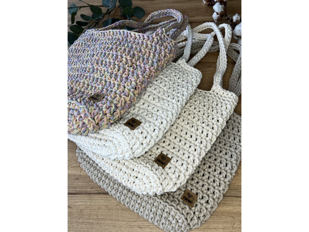 Taška je vyrobena z bavlněné macrame šňůry. Každá z kabelek má uvnitř přišitou háčkovanou přihrádku na drobné nezbytnosti (klíče, telefon) se dvěma kapsami, pouze u béžové varianty jedna větší kapsička (viz foto).
