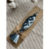 Klíčenka je vyrobena z bavlněných přízí s kovovou karabinou. Lze použít jako klíčenku nebo připnout na batoh/kabelku jako ozdobu.
